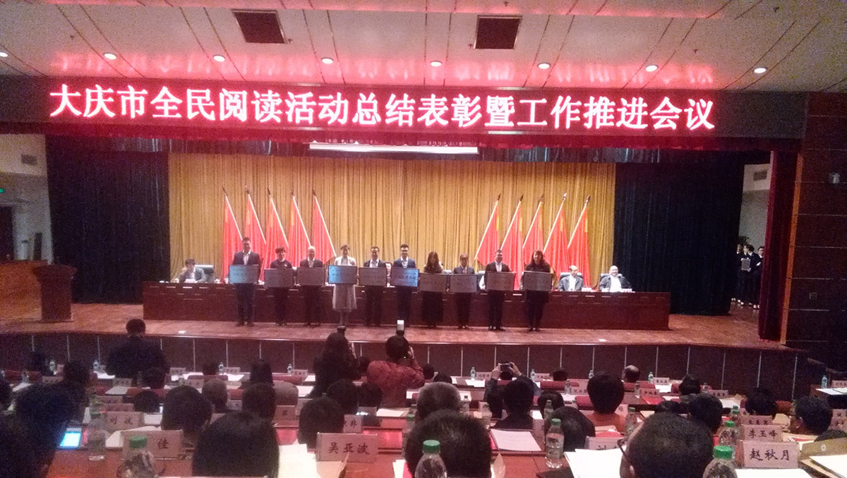 2017年5月8日下午,在“书香大庆”全民阅读活动开展十年之际,大庆市委市政府召开全民阅读活动总结表彰暨工作推进会,回顾十年书香路,吹响了争做一个爱读书大庆人的“集结号”。市委常委、宣传部长、市全民阅读活动领导小组组长宫镇江,市人大常委会副主任姚远,副市长朱清霞,市政协副主席栾红出席。