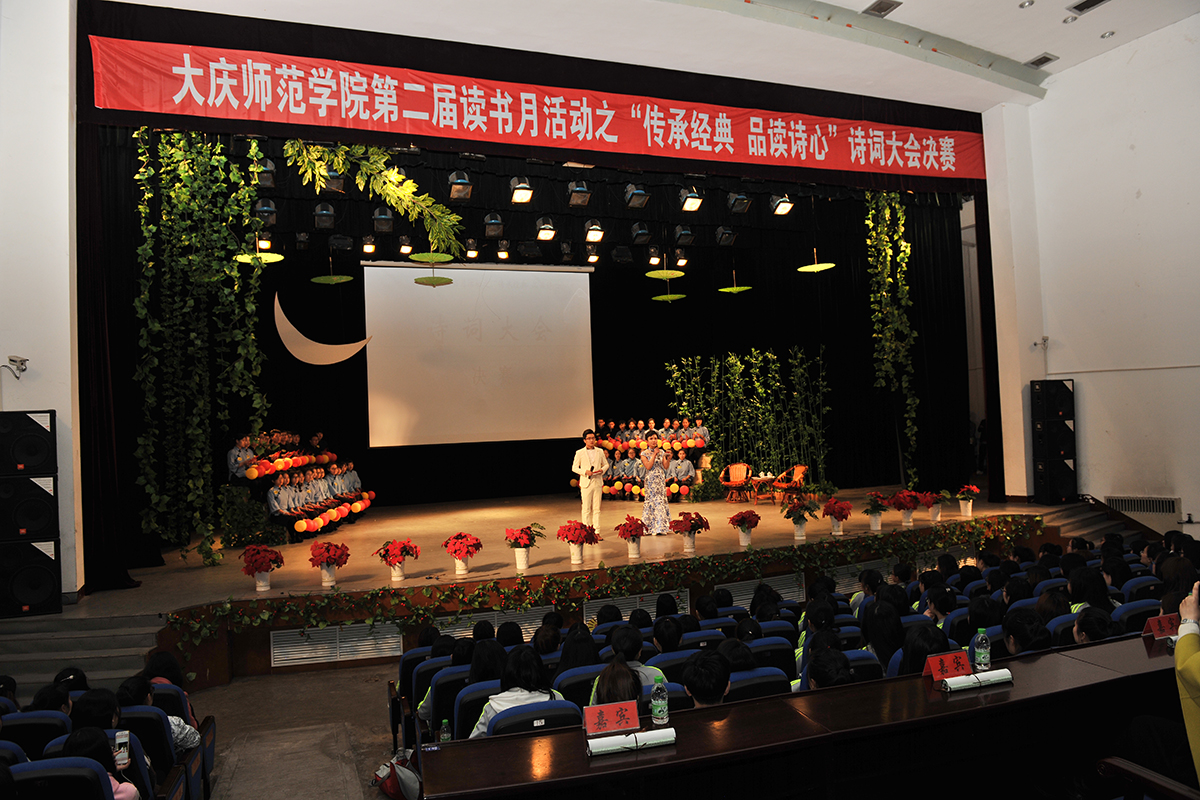 2017年4月19日下午,由校党委学工部(团委)主办、文学院承办的第二届读书月活动之“传承经典品读诗心”诗词大会决赛,在大学生活动中心圆满落幕。校党委副书记刘恒应邀出席。学生工作处领导,以及十二个院系的院长、党总支书记、学生党支部书记、团总支书记、辅导员也现场观看了比赛。