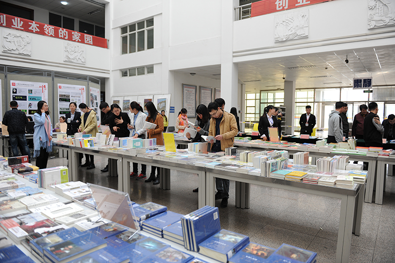由我校经济管理学院联合大庆三合书店举办的“万名师生万本书”图书展活动共展出一万多本优秀精品图书,书籍种类丰富,供全校师生借阅和购买。