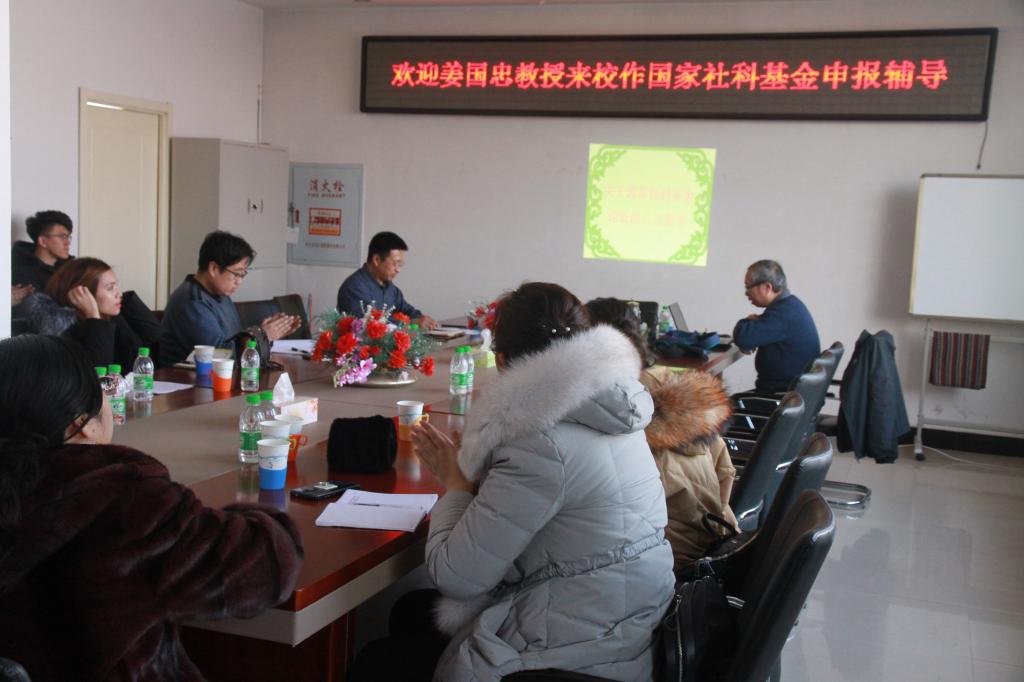 会上,姜国忠教授以“关于国家社科基金项目论证的几点思考”为题,结合自身经验和体会,用项目案例方式从数据表填写、项目选题、课题论证三个方面详细介绍了国家社科基金项目申报的相关问题,特别是针对课题论证七个方面的撰写内容、写作技巧、注意事项进行了重点说明;突出介绍了项目选题技巧、国内外相关研究的学术史梳理及研究动态、课题研究的总体框架、研究基础等核心内容的写作方法;同时姜国忠教授还介绍了近几年国家社科基金青年项目中标情况,鼓励年轻教师积极申报国家社科基金项目。