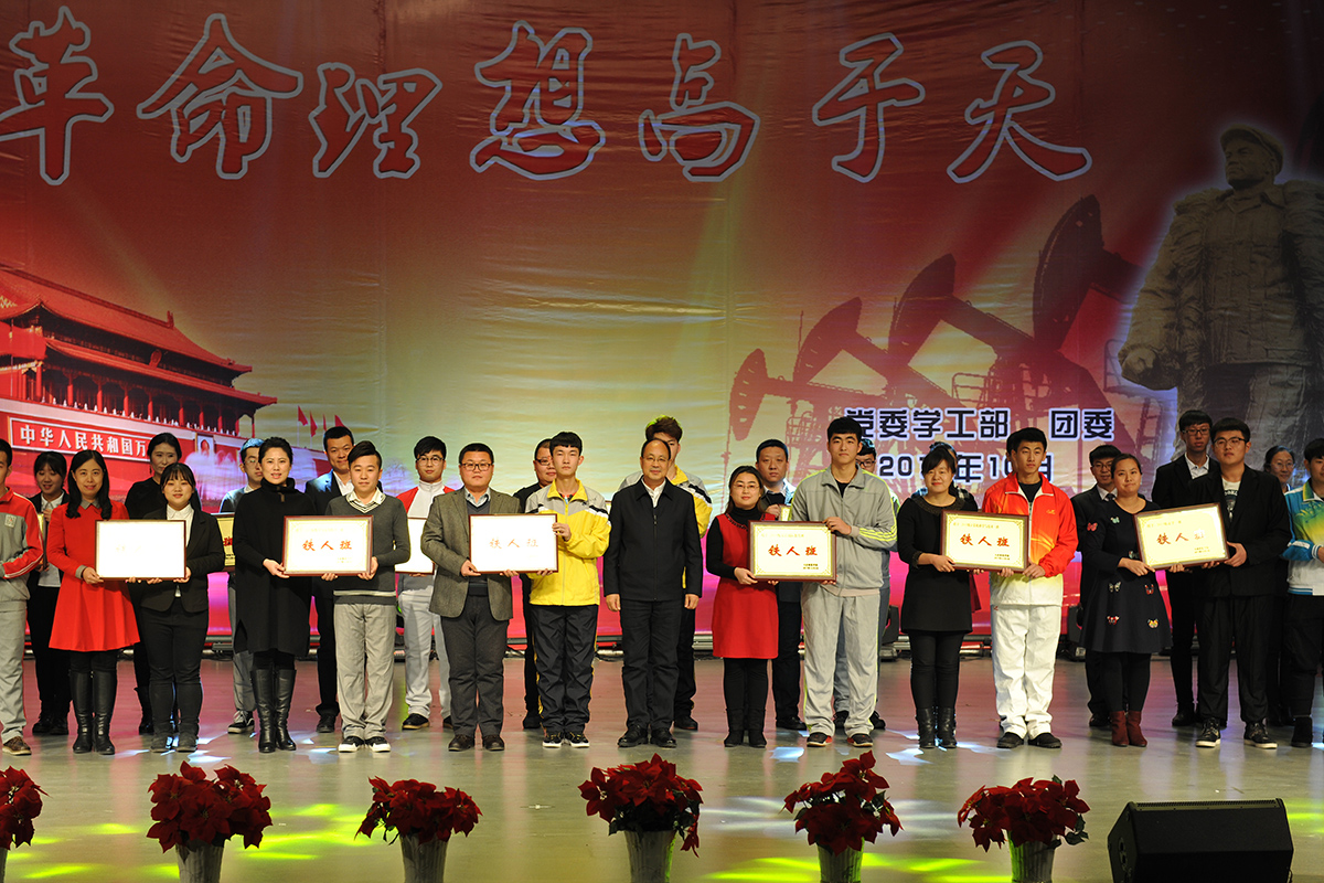 颁奖典礼隆重热烈,党委副书记刘恒宣读了《关于命名第一批“铁人班”的决定》,党委副书记、校长乔志和为20个“铁人班”的班主任和班长颁发了奖牌;党委副书记、纪委书记王革为获得优秀组织奖的单位开奖,党委书记徐克明为优秀组织单位颁发了奖牌。
