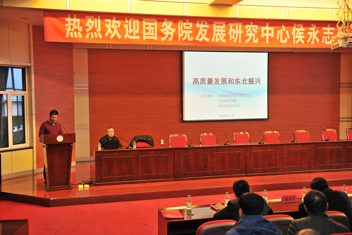 11月9日上午,应经济管理学院邀请,国务院发展研究中心侯永志研究员来我校作了一场主题为“高质量发展和东北振兴”学术报告,学校党委书记徐克明教授、市社会科学界联合会主席宋洪德、副主席席书涛、市让胡路区区委常委副区长权占峰、学校二级学院学科与学术带头人、以及经济管理学院教师和部分学生代表参加学术报告会,报告会由经济管理学院院长张平教授主持。