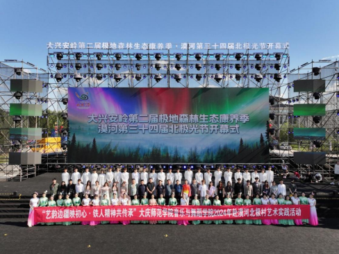 2024年6月21日,大兴安岭地区漠河市北极村第二届极地森林生态康养季启动仪式暨漠河第34届北极光节在漠河市盛装启幕。我校持续深化产教融合发展理念,不断探索人才培养模式,积极组织90余名师生参与艺术实践活动。在演出排练过程中,师生们克服了长时间的旅途颠簸和夜间低温等困难,每天坚持排练至深夜,大力弘扬并传承了大庆精神、铁人精神的优秀品质。在为期9天共计3场的演出活动中,以“春之歌、夏之旅、秋之韵、冬之梦”共四个篇章,通过《春》、《拥抱春天》、《一路花开》、《一路向北》、《追寻北极光》、《风吹麦浪》、《欢歌》、《冰之故乡》、《酒歌》等作品,带领观众领略了漠河的自然美景,展示了漠河四季变换的魅力。