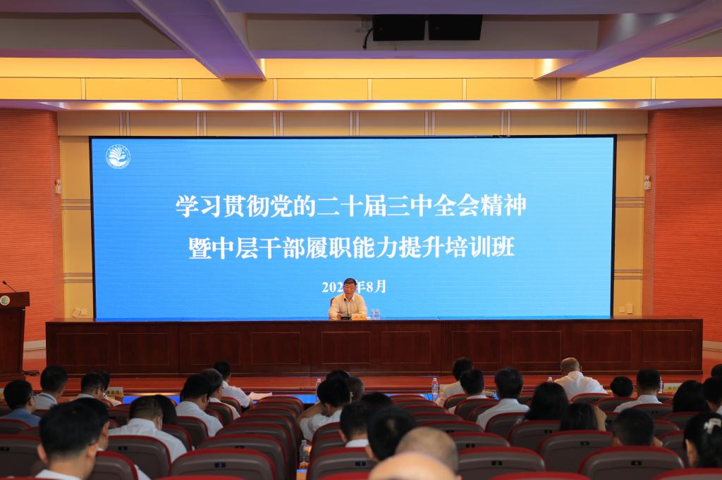 为深入学习贯彻党的二十大和二十届三中全会精神,进一步凝聚共识、提振精神,增强广大干部的大局意识、责任意识和履职能力,8月24日—25日学校举办了学习贯彻党的二十届三中全会精神暨中层干部履职能力提升培训班。学校领导班子成员,全体中层干部参加了培训。