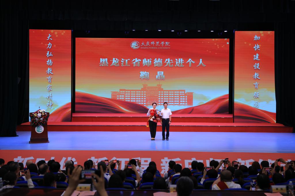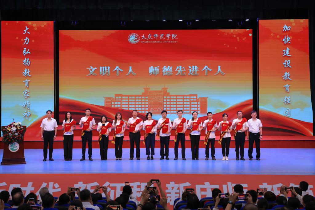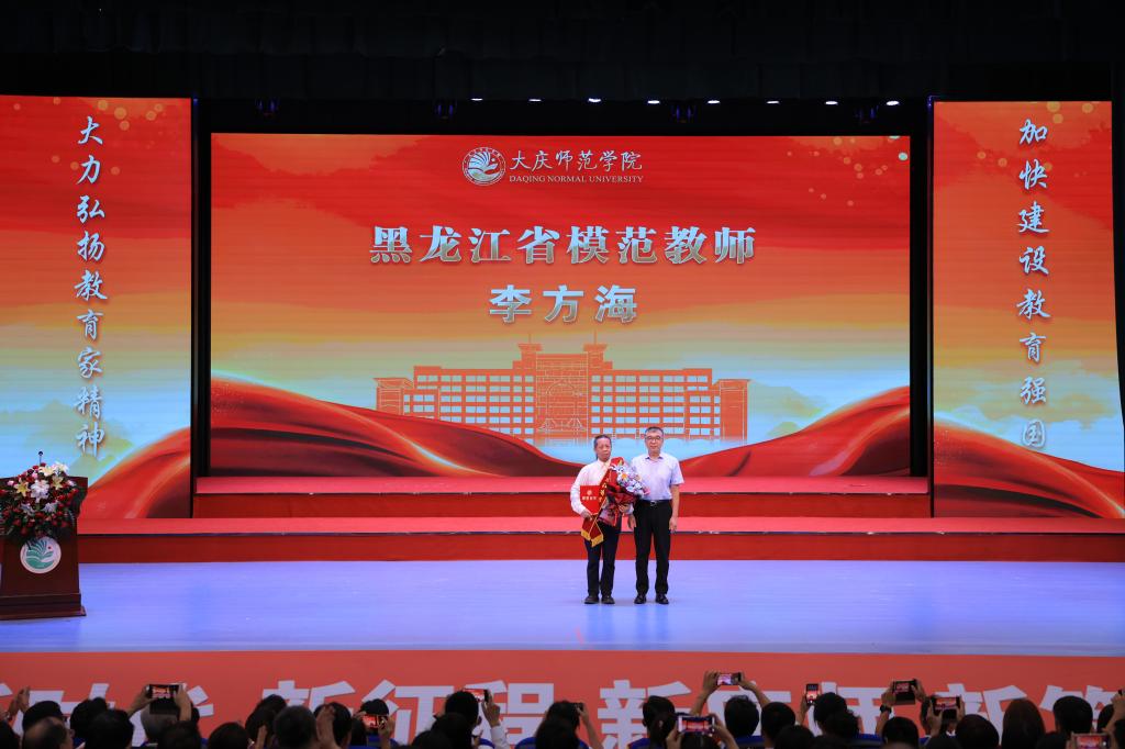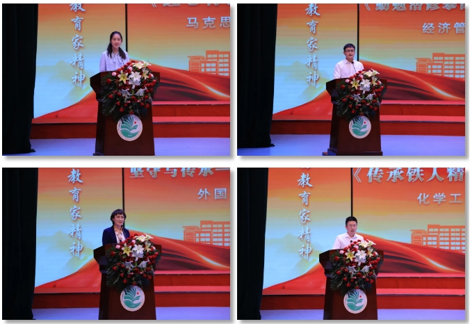 会上,青年教师代表,马克思主义学院李丹玮分享了5年思政课的教学实践之路,她表示将以饱满的热情书写教育事业发展的青春华章;经济学博士、学术带头人、国家社科基金项目主持人,经济管理学院孙伟仁教授从勤勉奋进、善学善行做潜修之人,锲而不舍创一流之果,坚守一线科教融汇育创新之才等方面分享科研工作经验;全国高等师范院校英语教学研究学术带头人,全国曾宪梓教育基金奖获得者,黑龙江省教学名师、模范教师,外国语学院冯展极教授作发言,她分享了从教30多年成长、收获、感恩的故事;师德先进集体、文明单位代表,化学工程学院院长高清河发言,他表示化学工程学院将在学校党委领导下,始终坚持以大庆精神(铁人精神)育人,继续秉承“自强不息,臻于至善”的校训,培养更多高素质的应用型化学化工类复合型人才、为推动教育事业高质量发展作出新的更大贡献。
