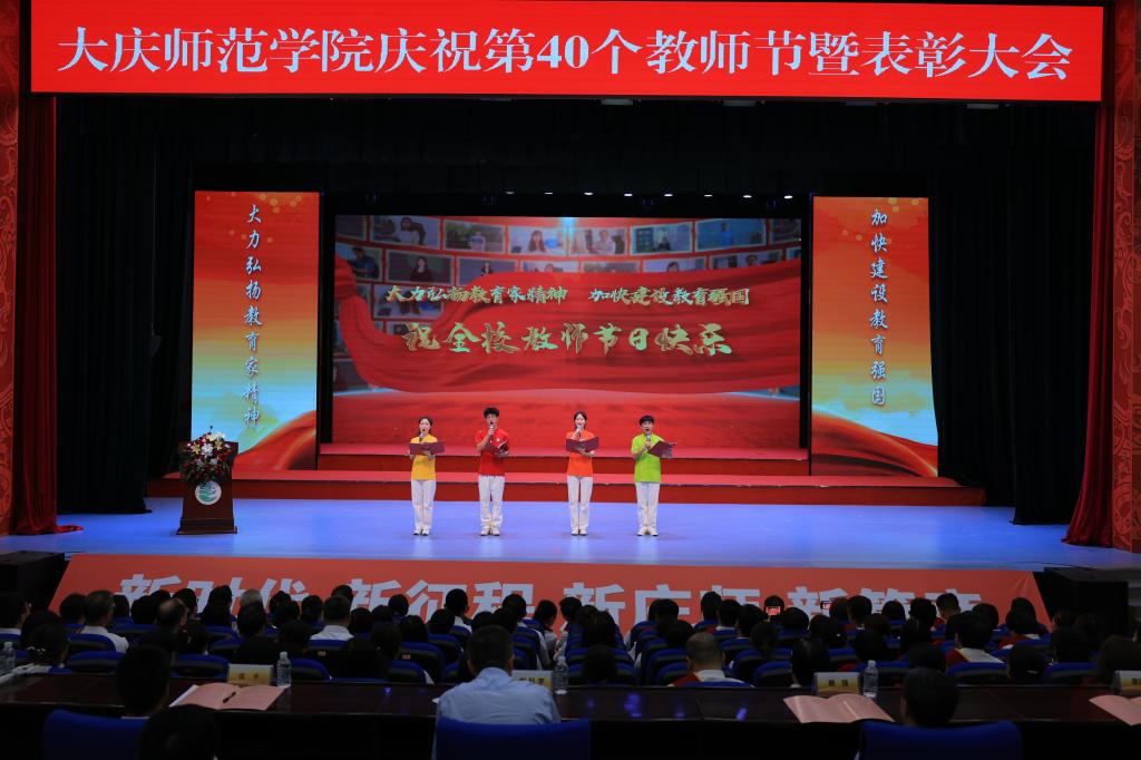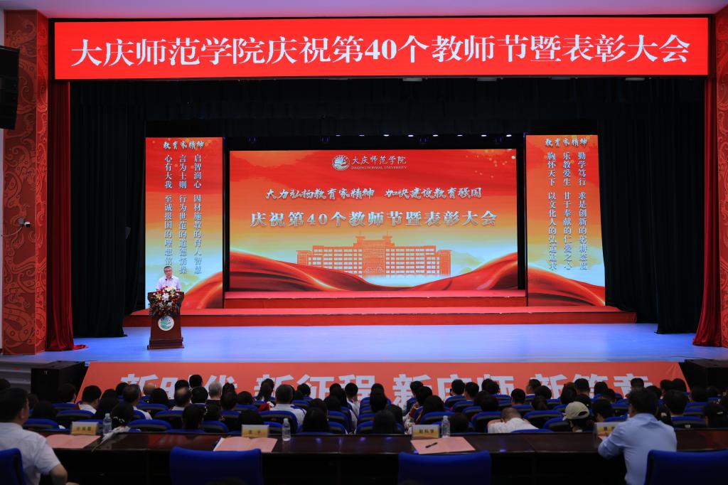 初心如磐育桃李,最美园丁绽芳华。9月10日,我校在大学生活动中心召开主题为“大力弘扬教育家精神,加快建设教育强国”的庆祝第40个教师节暨表彰大会。学校党委书记赵科学、校长张平、党委副书记滕强、副校长许双毅、副校长康忠伟。机关、教辅部门负责人,各学院党政负责人、教师代表、学生代表1000余人参加大会,大会由党委副书记刘迪主持。