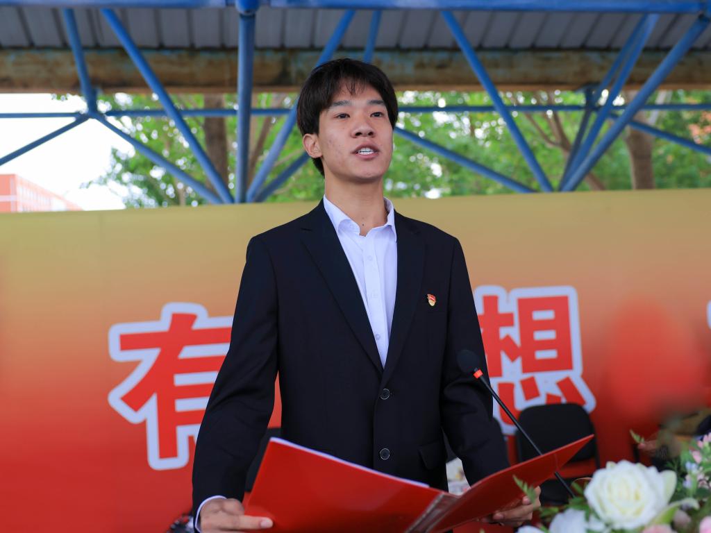 生物工程学院2021级生物制药专业仇鸿雨同学代表全体在校生发言。他在发言中表示,大学课程广泛且专业、课堂讨论与学术讲座激发思考、社团活动与社会实践拓宽视野,希望新同学在这片充满希望的地方学到广博的知识、交到真诚的朋友,不断充实、不断成长。