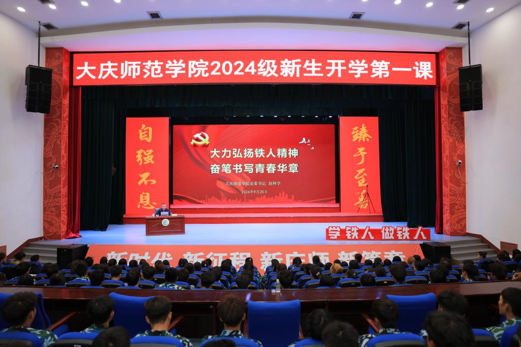 为深入学习贯彻党的二十届三中全会精神和全国教育大会精神,落实立德树人根本任务,9月25日下午,校党委书记赵科学以“大力弘扬铁人精神 奋笔书写青春华章”为题,为3000余名2024级新生讲授“开学第一课”。新生辅导员及全体新生共同聆听。