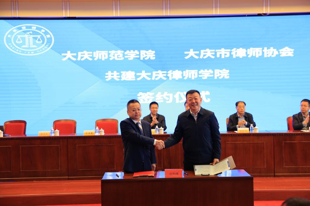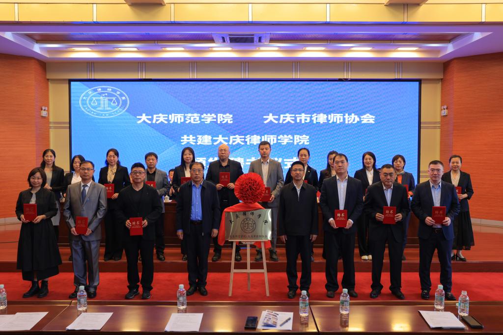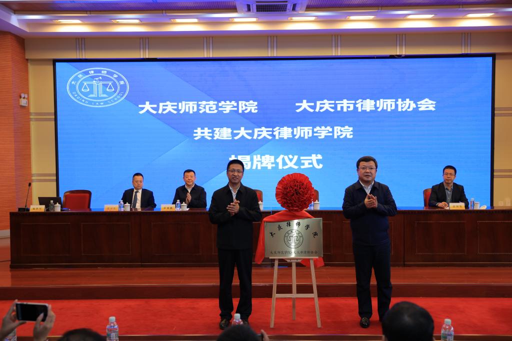 张平与陈树春一同为大庆律师学院揭牌并为学院首批聘任的兼职教师颁发了聘书。