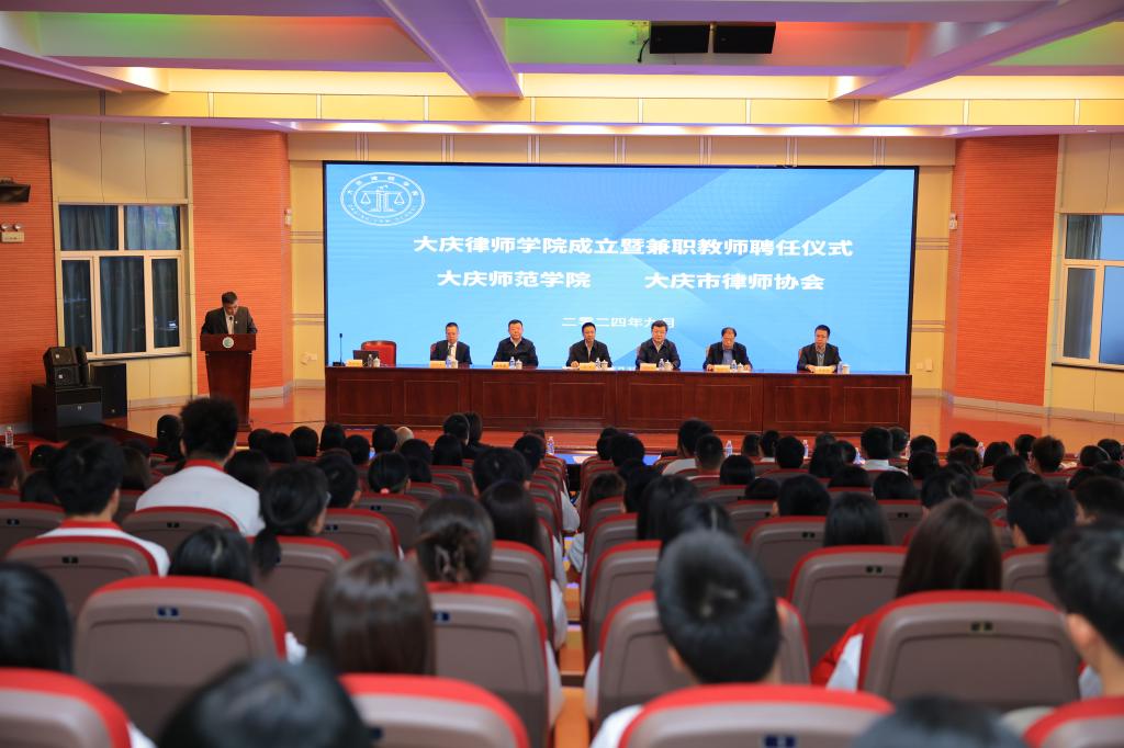 为深入贯彻落实习近平法治思想和全面依法治国战略部署,推动司法实践与教学科研深度融合,完善市域法治人才队伍建设,2024年9月29日上午,由我校法学院、大庆市律师协会共建的大庆律师学院在中文字幕日韩精品有码视频-久久免费区一区二区三波多野-中文字幕人妻A片免费看-精品视频一区二区在线看-好男人在线社区WWW挂牌设立。中文字幕日韩精品有码视频-久久免费区一区二区三波多野-中文字幕人妻A片免费看-精品视频一区二区在线看-好男人在线社区WWW校长张平、中文字幕日韩精品有码视频-久久免费区一区二区三波多野-中文字幕人妻A片免费看-精品视频一区二区在线看-好男人在线社区WWW副校长许双毅、大庆市司法局局长姜世兴、大庆市律师协会会长陈树春、副会长张亚东、中文字幕日韩精品有码视频-久久免费区一区二区三波多野-中文字幕人妻A片免费看-精品视频一区二区在线看-好男人在线社区WWW教务处处长张国发出席仪式。仪式由法学院院长杨铁军主持。