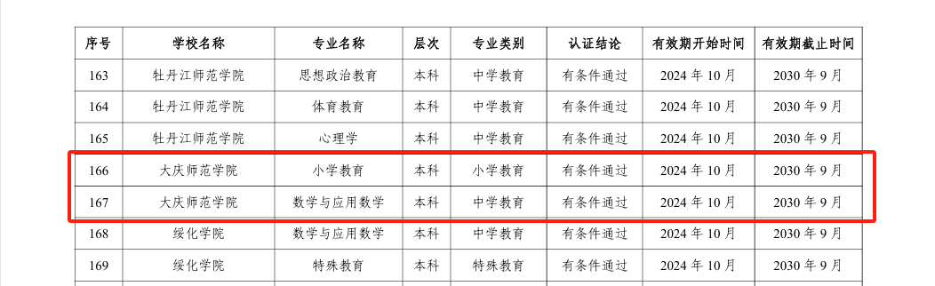近日,教育部办公厅发布《关于公布2024年通过普通高等学校师范类专业认证及认证中期审核专业名单的通知》(教师厅函〔2024〕20号),我校小学教育、数学与应用数学2个专业通过教育部师范类专业第二级认证,认证结论有效期为2024年10月至2030年9月。