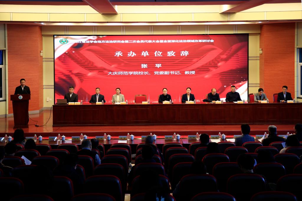 黑龙江省法学会地方法治研究会副会长高权代表地方法治研究会致辞,他表示地方法治问题是法治理论和实践工作者的开展各项工作的重点方向,并对地方法治研究会的未来发展与地方法治领域改革提出建设性意见。
