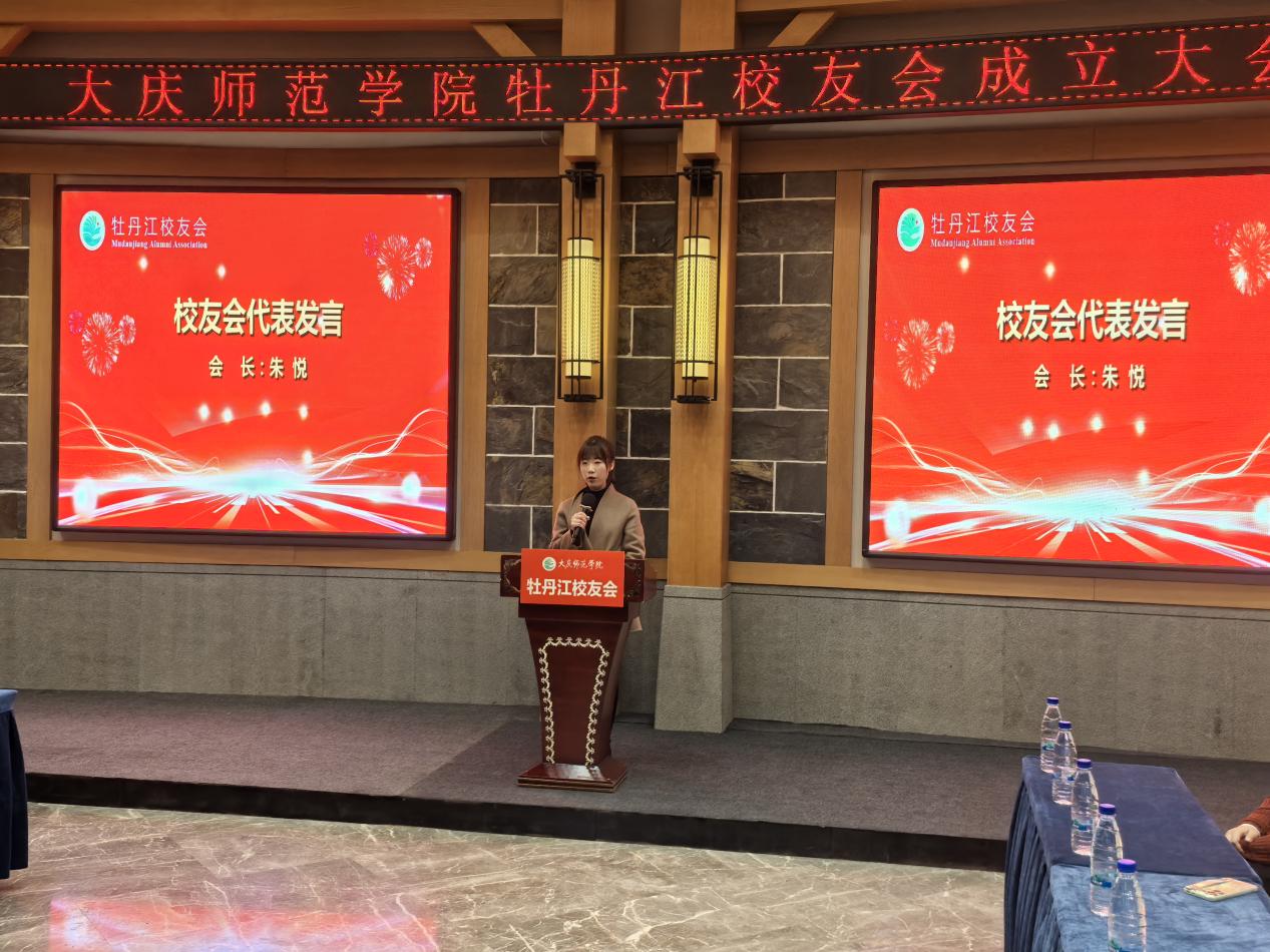 朱悦代表第一届理事会成员讲话。她表示牡丹江校友会的成立,使得庆师校友在牡丹江有了属于我们自己的大家庭。今天,非常荣幸当选牡丹江校友会会长,感谢大家的信任和支持,日后将携手各位校友,牢记校党委嘱托,团结奋斗,勤勉工作,尽快打开局面,全力以赴服务母校事业发展和广大校友,更好的回报母校和校友的信任。