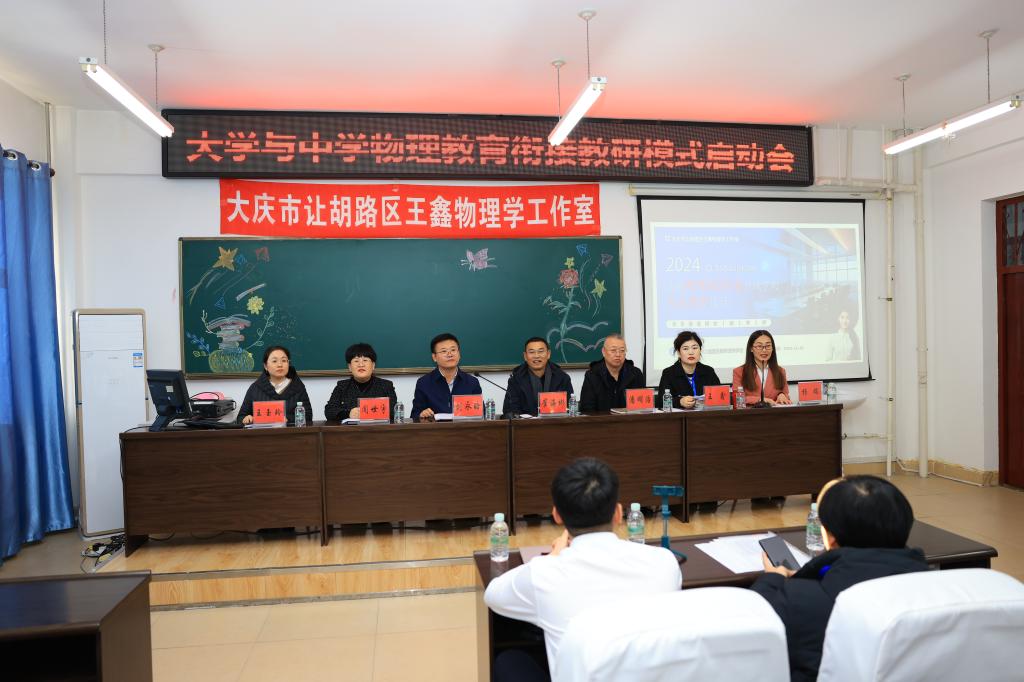 随后,初中物理工作室负责人王鑫教研员以“教—学—评”一体化的设计思路,作了题为《浅谈新课程标准视域下的无生课堂设计》讲座,讲座中深入剖析了什么是无生授课的模式、并邀请铁人中学李玉鹏老师做无生课堂展示。大庆市第36中学赵春超老师对课堂教学展示给予了范例式的点评。参会师生对无生课堂教学如何教,如何学,如何评都有了深刻的认识。会议最后,机电工程学院副院长王玉玲对让胡路区进修学校及各中学物理骨干教师的大力支持表示感谢。她表示,此次教研启动仪式对提升师范生教学能力、推动中学物理教育改革意义重大。未来双方可在教学资源共享、教学方法研讨、师资培训等方面深入合作,共同为物理师范教育发展贡献力量。