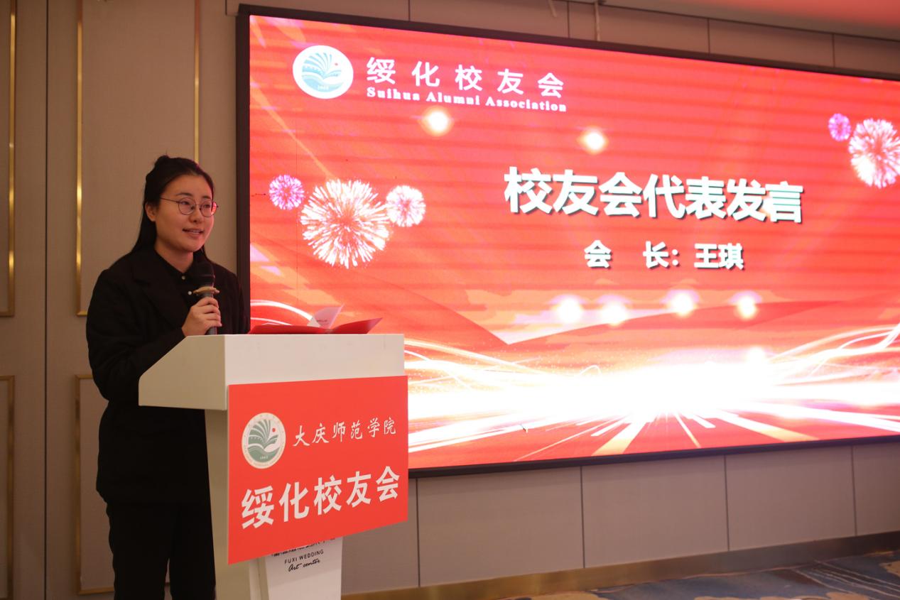 王琪代表第一届理事会成员发言。她回顾了在庆师求学的难忘青葱时光和毕业后的成长感悟。多年来始终牢记学校的教诲和关心,也见证了母校的发展与壮大,母校是成长的摇篮,是心灵的港湾。她表示,今后将携手各位校友,牢记学校党委嘱托,团结奋斗,勤勉工作,全力以赴服务母校事业发展和广大校友,更好的回报母校和校友的信任。