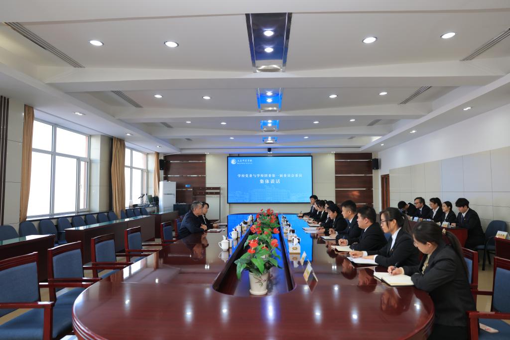12月9日,学校党委书记赵科学与学校新一届团委委员进行集体谈话。党委副书记、工会主席刘迪主持会议,新一届团委委员参加会议。