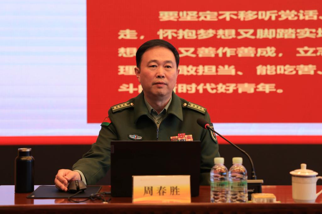 周春胜以《厚植爱党、爱国、爱军情怀 以鸿鹄之志奔赴盛世之青春》为题,结合自己三段精彩的军旅生涯,围绕“爱党,就是要坚守信仰,涵养理想信念之光”“爱国,就是要胸怀天下,燃起为国为民之芯”“爱军,就是要心系国防,磨砺强军兴军之剑”三个方面,为同学们上了一堂生动的国防安全教育课。周春胜号召同学们要进一步根植爱党信念于心,树牢为国奉献之志,胸怀从军报国之愿,铸牢国防安全之魂。