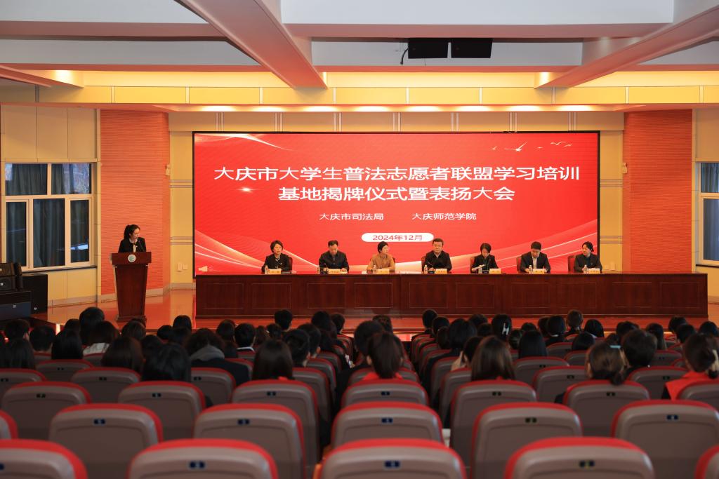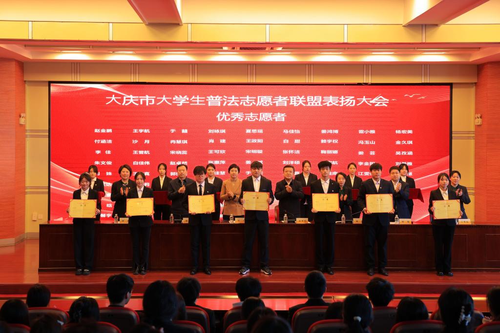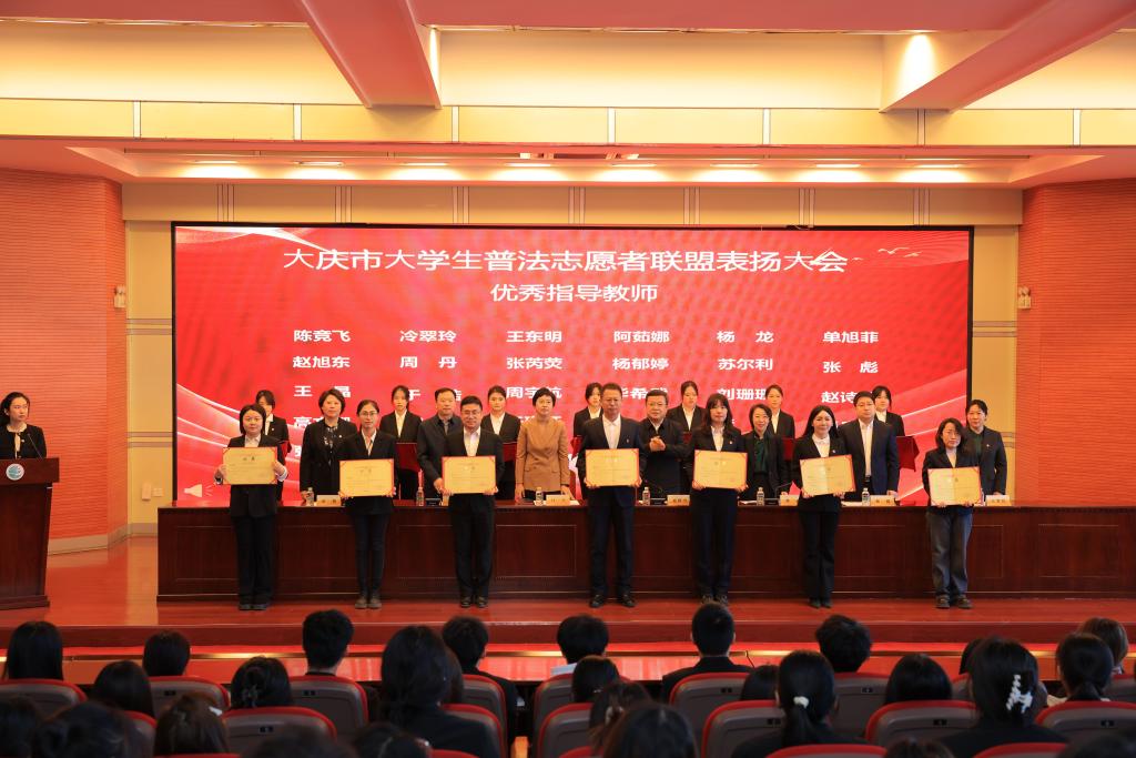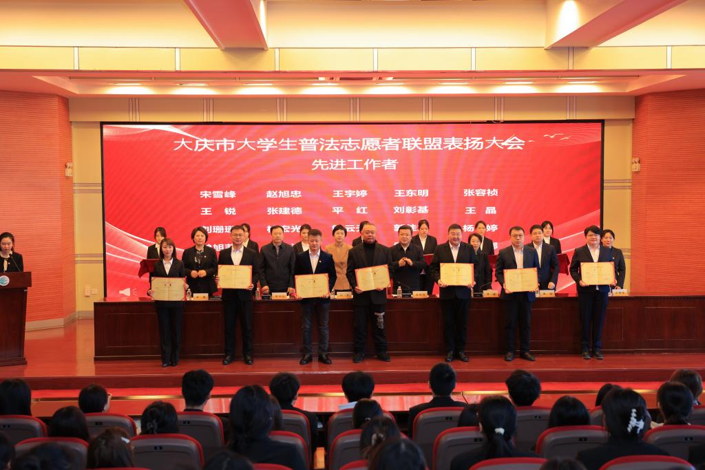 大庆市大学生普法志愿者联盟学习培训基地揭牌仪式暨表扬大会在我校召开,充分表明大庆市司法局对我校及法学院大学生普法工作的认可。