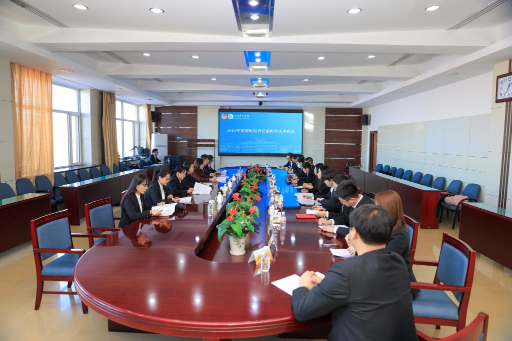 为全面贯彻习近平总书记关于青年工作的重要思想和关于教育的重要论述,深入学习党的二十届三中全会精神,贯彻落实学校第三次党代会精神,推进全面从严治团,深化基层团干部队伍能力作风建设,推动学校共青团工作高质量发展,2025年1月3日,学校团委召开第一届委员会第二次会议暨二级学院团组织书记述职大会,听取二级学院团组织书记述职。学校党委副书记、工会主席刘迪,党委委员、宣传统战部部长徐媛,校团委全体教师,各基层团委负责同志参加会议。会议由校团委书记王贺民主持。