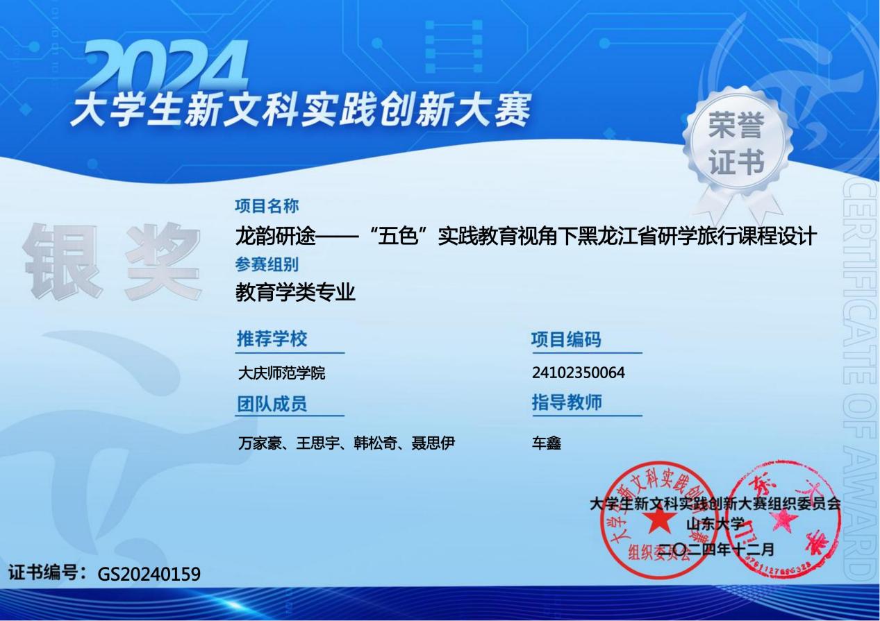 1月21日,由黑龙江省教育厅主办的黑龙江省新文科教育联盟成立大会暨全省首届大学生新文科实践创新大赛颁奖典礼在黑龙江大学举行。
