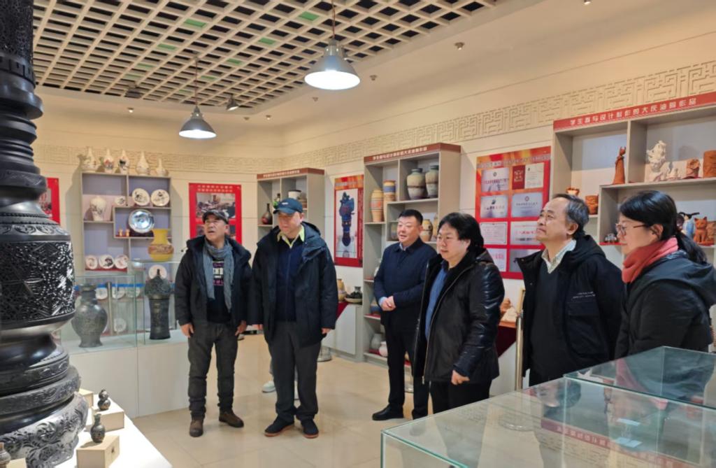 在大庆油陶作品陈列馆和美术馆,张立翔详细介绍了大庆油陶制作工艺、文化传承等方面的独特优势,以及我校石油工业题材的主题绘画创作。