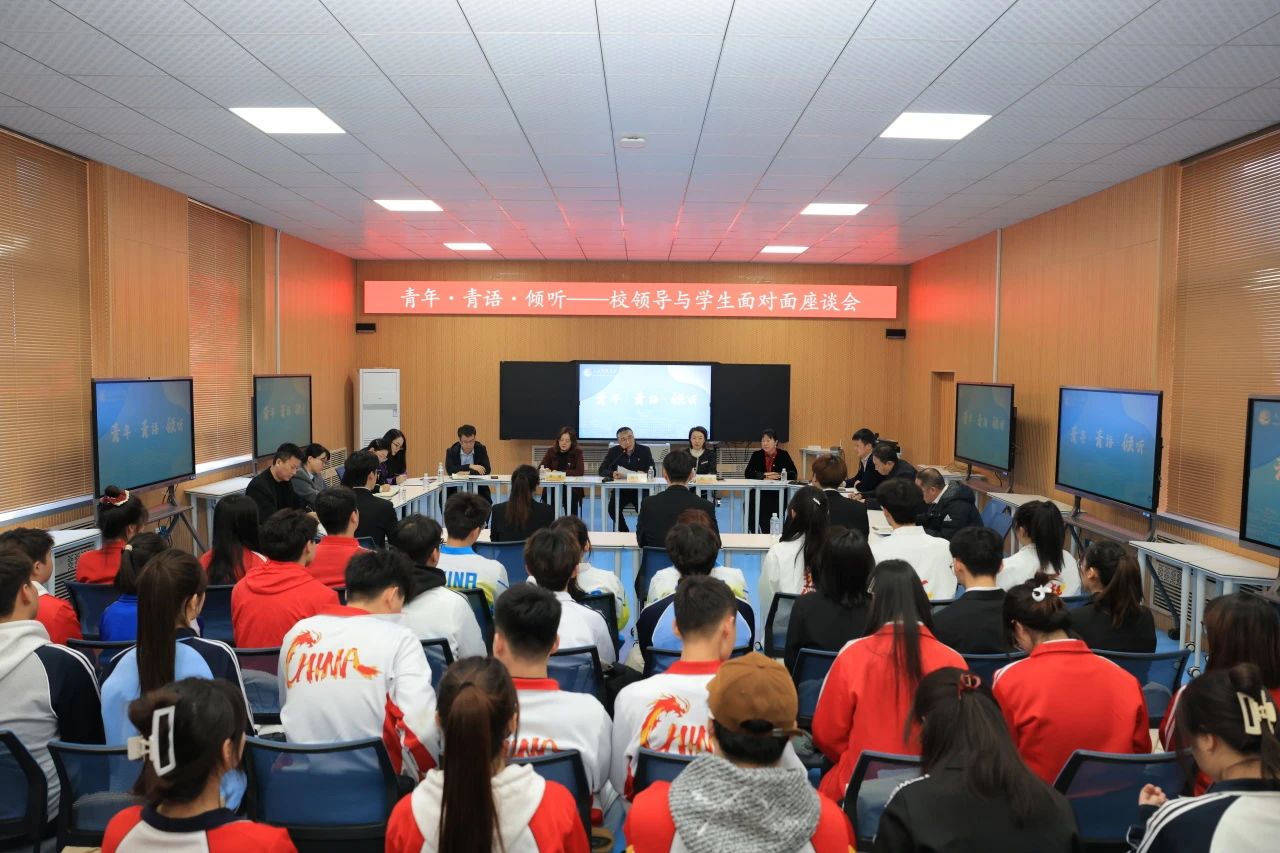 3月18日下午,青年·青语·倾听——校领导与学生面对面座谈会在教师技能训练中心201教室召开。党委书记赵科学,党委副书记、工会主席刘迪,党委委员、宣传统战部部长徐媛、办公室、学生工作部、团委、教务处、后勤管理处、现代教育技术中心负责人,二级学院团委负责人,青年志愿者代表、学生代表60余名师生参加活动。