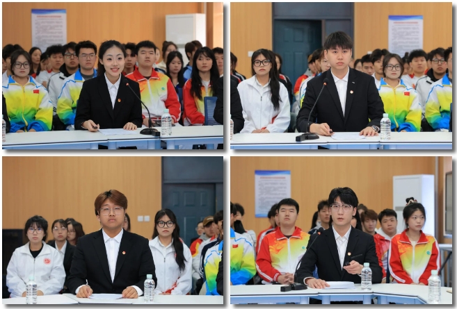 亚冬会志愿者代表周继儒、王一博、杨航、于福琪四名同学先后分享服务亚冬会期间的所见、所闻、所为、所感。他们表示这段经历不仅是个人成长的宝贵财富,更是一次对社会责任的深刻践行。将与全校青年志愿者一道将志愿者精神延续下去,积极投身更多公益活动,在生活的每一个角落继续发光发热。