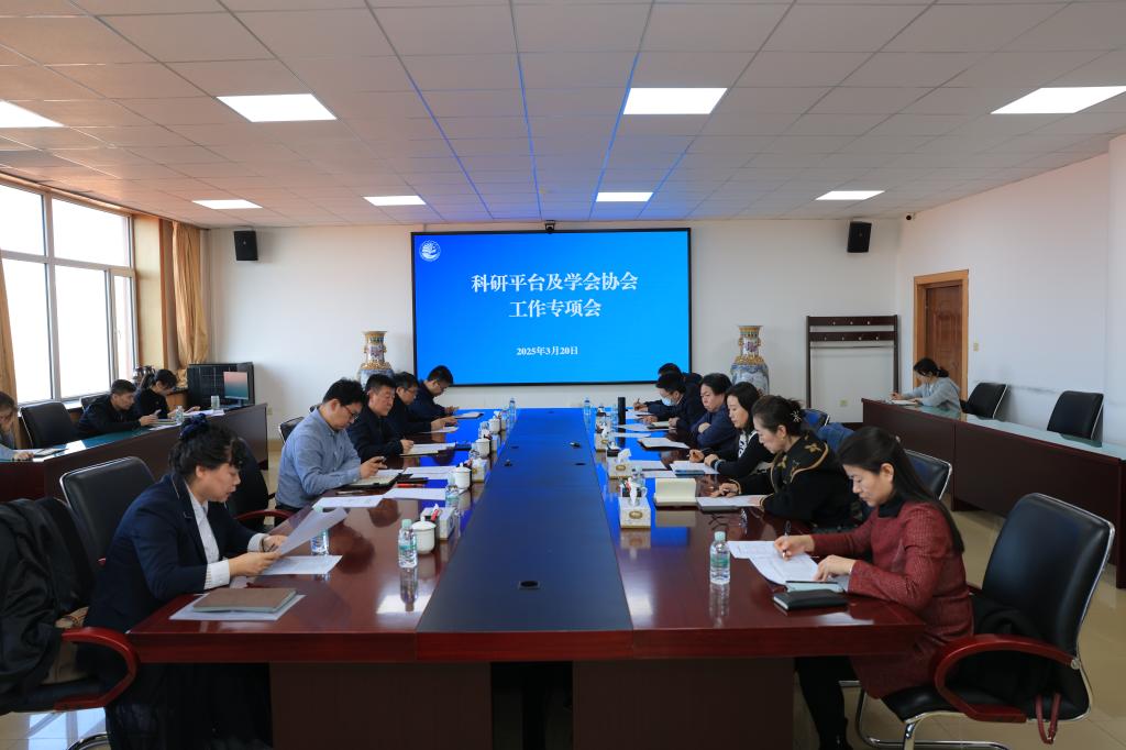 3月20日下午,学校召开科研平台及学会协会工作专项会,副校长许双毅主持会议,市局级以上科研平台和学会协会负责人、科研处全体成员参加会议。