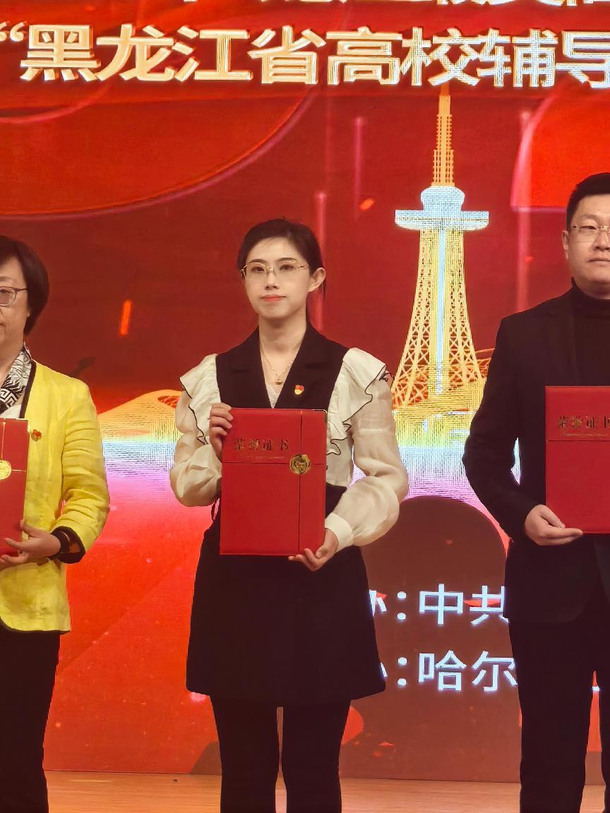 3月27日下午,由中共黑龙江省委宣传部、中共黑龙江省委教育工委、黑龙江省教科文卫体工会主办的2024年“龙江最美高校辅导员”暨第十六届“黑龙江省高校辅导员年度人物”颁奖仪式在哈尔滨工程大学举行。省委宣传部、省教育厅等领导出席活动并颁奖。经学校推荐、资格审核、通讯评审、述职答辩等环节,我校辅导员汪丽媛、王航获“黑龙江省高校辅导员年度人物提名奖”。