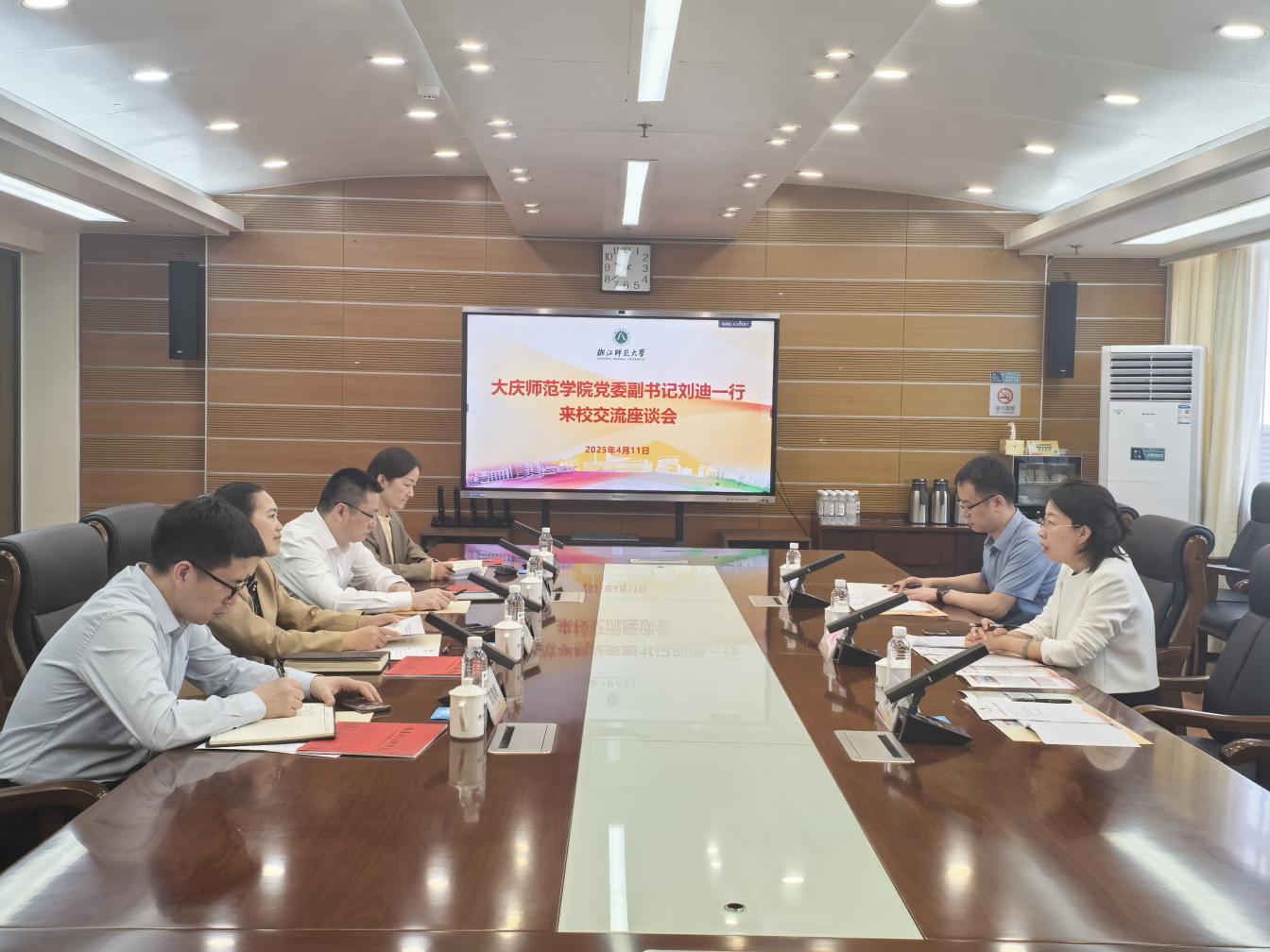 会上,刘迪介绍了学校概况和办学特色,重点介绍了学校红色文化育人的实践经验、大中小学思政课一体化建设的成果,特别推介了设在我校的全国思想政治理论课教师研修基地。她表示浙江师范大学地处改革先行示范区,近年来在党建思政、学科建设、人才引进等方面发展迅猛,为省属师范高校提供了“浙师”样版,有许多宝贵经验和举措值得学习。两校同为以教师教育为特色的高校,希望借此机会进一步加强与浙江师范大学的协作和交流,架起更多合作之桥。