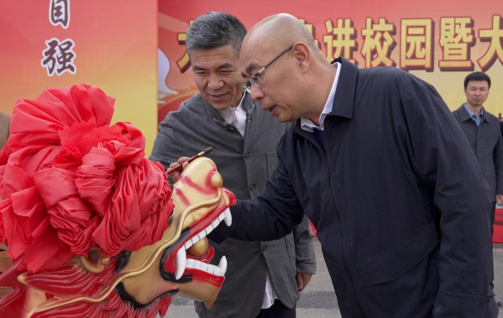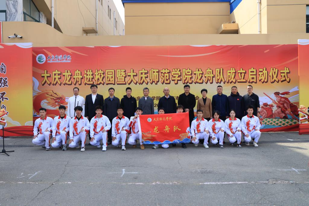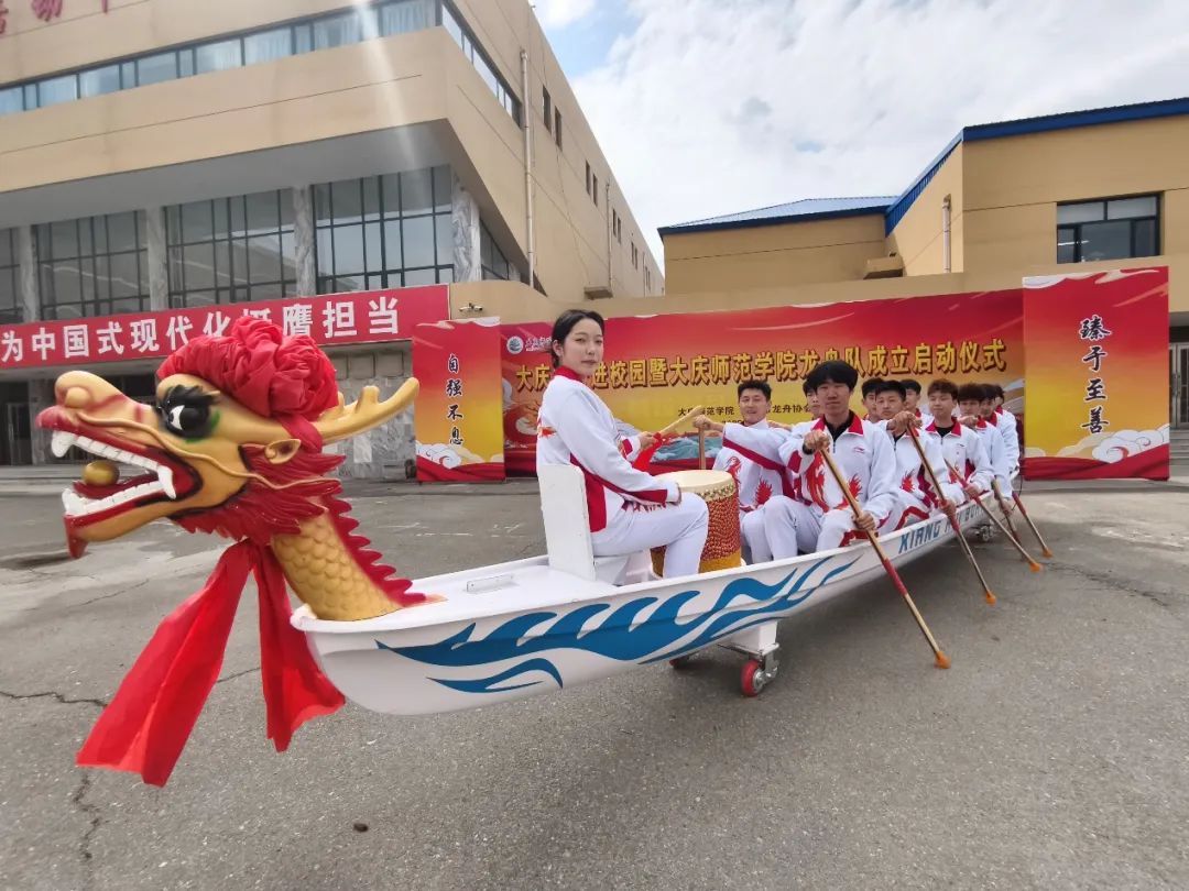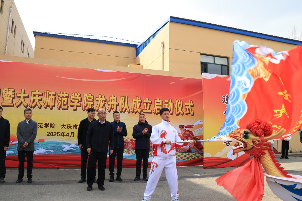 随后,现场举行了传统“龙舟点睛”仪式。周丹与王海涛手持朱笔,为龙舟“点睛”,寓意队伍吉祥顺利、勇创佳绩。该队伍的成立标志着学校在推动传统体育项目进校园方面迈出重要一步,也为学生提供了展示团队精神与拼搏风采的新平台。