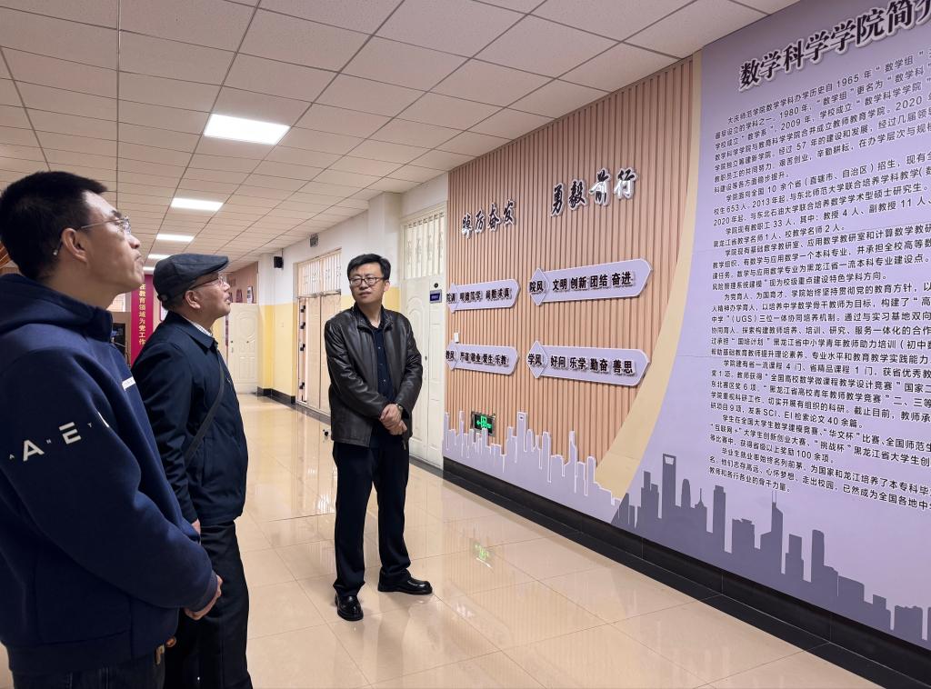 会后,杨长德来到数学科学学院,在学院领导陪同下参观走廊文化墙,深入感悟学院的发展历程,切身感受学院的崭新气象。(来源:团委 撰稿:吕金凤 审核:王贺民 编辑:姜丰翼)