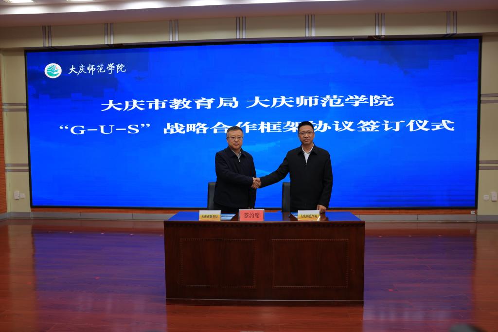 朱清霞代表大庆市政府,对协议的签署表示祝贺。她指出,“G-U-S”战略合作平台和协同育人实验区及大庆精神(铁人精神)育人一体化协同创新中心的建立,为我市建设现代教育强市注入了新的动能、赋予了新的内涵,必将在推进大庆教育事业高质量发展的新起点上,共建市校融合“新样板”,共筑精神传承“新高地”。她希望,双方紧抓此次签约合作契机,着眼主动融入国家战略、主动助推教师发展、破解教育难题,市校共助大庆教育事业高质量发展。