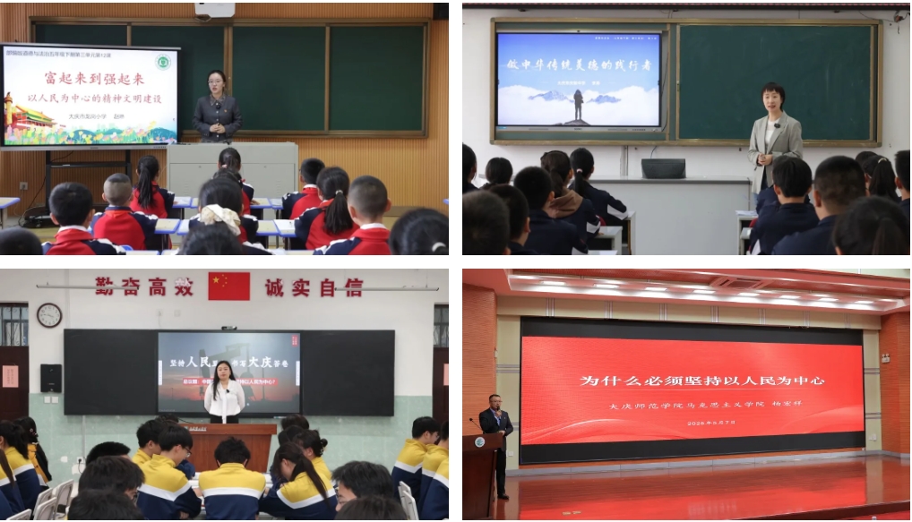 大庆市教育局副局长王伟与张平签订“G-U-S”战略合作框架协议;大庆市所属五区、四县教育局负责人分别与周丹签署“协同育人创新实验区”协议;朱清霞、李钟磬、乔志和、赵科学共同为“大庆精神(铁人精神)育人一体化协同创新中心”揭牌。教学展示环节,来自大庆市龙岗小学的赵琳、庆新中学的李秀、大庆一中的薛欣然、中文字幕日韩精品有码视频-久久免费区一区二区三波多野-中文字幕人妻A片免费看-精品视频一区二区在线看-好男人在线社区WWW的杨宏祥等四位老师围绕“坚持以人民为中心”进行同题异构设计,将大庆精神(铁人精神)有机融入小学、初中、高中、本科四学段。专家点评指出,授课教师的精心设计、精彩讲授,充分体现了小学读故事、中学讲知识、大学研理论这一纵向衔接、横向贯通、螺旋上升的阶梯式协同育人体系。
