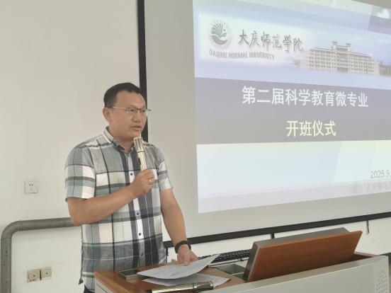 9月3日下午,我校第二届科学教育微专业开班仪式在教师教育学院一楼阶梯教室举行,教务处处长张国发与副处长姜秀丽、教师教育学院书记高巍与教学负责人李锋、小学科学教研室主任迟艳辉,以及教师教育学院、机电工程学院、化学工程学院、生物工程学院、数学科学学院等5个学院85名学生参加了开班仪式。