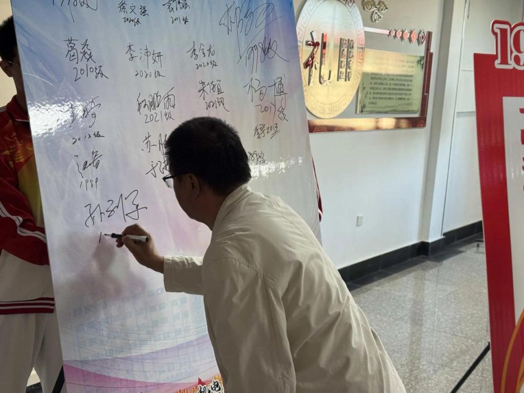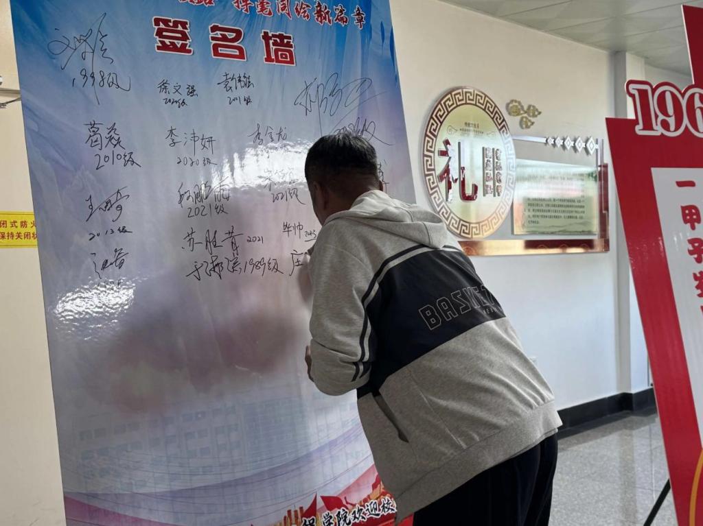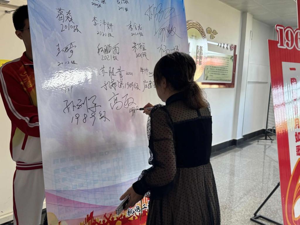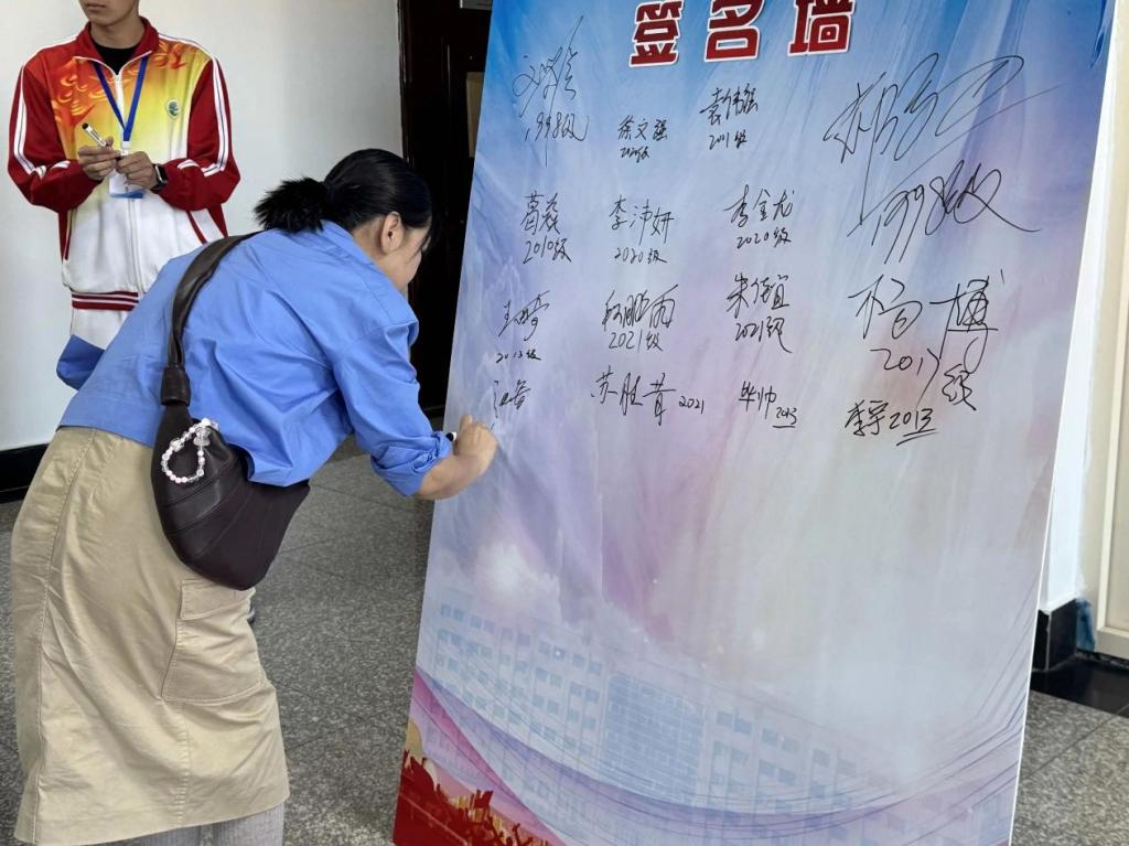 中午,校友们用餐完毕,游览校园,回到学院,签名、打卡、交流、探讨。
