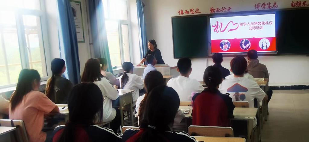 2023年5月24日,外国语学院会同国际合作处联合举办了出国人员培训班。培训内容包括外交礼仪、跨文化交流、出国常用语及各方面注意事项。本次培训目的是提高出国留学学生们的综合素质和跨文化交流的能力。