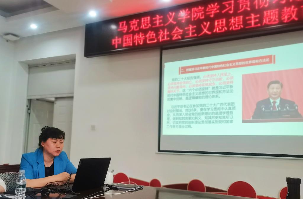 在进行理论阐述后,讲授“把握好习近平新时代中国特色社会主义思想的世界观和方法论”时,马吉芬同志结合工作实际,以《原理》和《铁人精神育人》等学校和国家级一流课程为例,提出了课程建设问题,同时也给出了解决教师急难愁盼问题的对策建议。