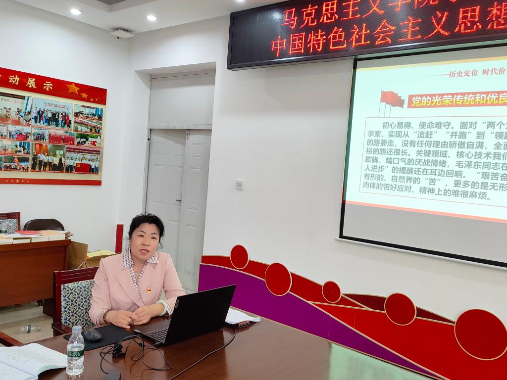党总支书记赵桂英同志以《深刻理解 踏实践行“三个务必”》为题,从党的二十报告开篇习近平总书记提出的“三个务必”入手,围绕“三个务必”的历史定位和时代价值、理论依据和重大意义、使命担当和踏实践行等三个方面进行了讲授。赵桂英同志以生动详实的党史、新中国史、改革开放史和新时代十年的典型案例切入,从历史的纵向,深刻揭示出我们党百年成就与成功的密码就是十九届六中全会总结的“十个坚持”,而“三个务必”恰是其中的“三个坚持”--人民至上、艰苦奋斗、敢于斗争,这些认识对于学院《概论》课和《纲要》课的党员教师是一次理论提升与信念教育、品格融入课程的示范。在谈到理论依据时,赵桂英同志阐释了“三个务必”的“永恒课题和终身课题”、“光荣传统和优良作风”和“鲜明品格和精神特质”。学用结合,就此分析马院的优劣势、长短板,以“牢记教育初心、担当育人使命”、“谦虚谨慎为人、艰苦奋斗创新”、“增勇气强本领、敢于善于斗争”三个方面建议,强化思政课教师落实习近平总书记提出的“四有”好老师、“六要”思政课教师、“三为(人、事、学)”大先生、思想、政治、实践、专业“四练(炼)”要求和“八个相统一”的课程标准。