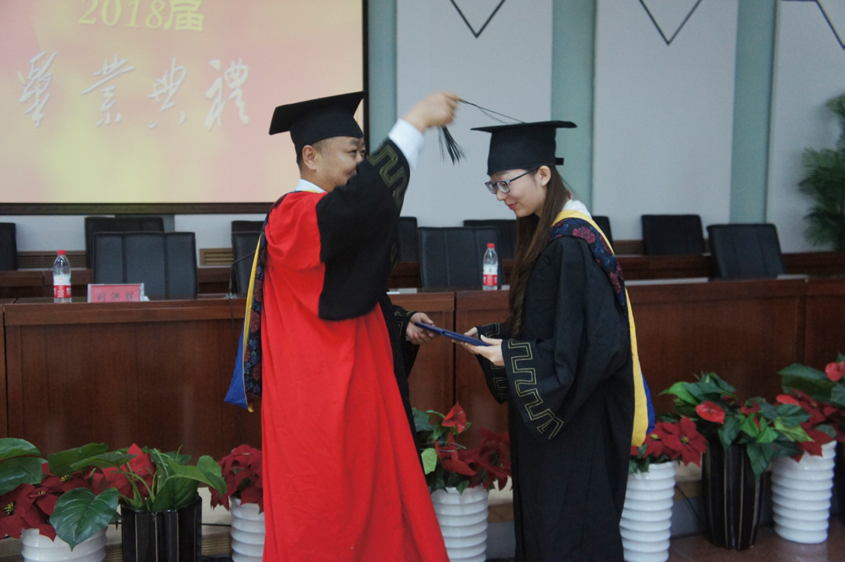 毕业典礼在庄重的国歌声中拉开帷幕,典礼上,学生党支部书记徐宏书宣读了关于表彰2018届铁人式优秀毕业生、校优秀毕业生、省三好学生、优秀共产党员的决定,由学院领导为获奖的同学颁发荣誉证书。张晓钰同学代表在校生发言,谢云琦同学代表毕业生发言,化工系主任陈成作为教师代表发表了真挚动人的感言,院长刘洪胜为全体毕业生致辞,他首先向学海泛舟、圆满完成学业的同学们表示祝贺,为同学们的成长、成才付出辛勤劳动的老师和家长们致以崇高的敬意;他讲到,只有毕业,才知同学亲,只有远离,才知母校情,并希望同学们肩负起服务社会和报效祖国的历史使命,并祝愿同学们前程似锦,祝愿同学们的明天更加美好。最后,刘洪胜院长为每一位毕业生拨流苏,颁发学位证并留下珍贵合影。