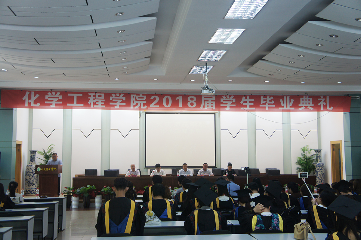 2018年6月20日下午13:30,化学工程学院2018届学生毕业典礼在铁人讲堂隆重举行,化学工程学院院长、党总支书记刘洪胜、党总支副书记廉世伟、院长助理高清河、院长助理何丹凤、学生党支部书记徐宏书、全体辅导员、毕业班班主任和部分教师代表出席典礼,与全体毕业生共同庆祝这一喜获丰收的难忘时刻,典礼由廉世伟主持。