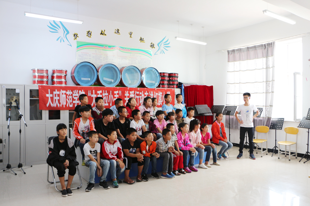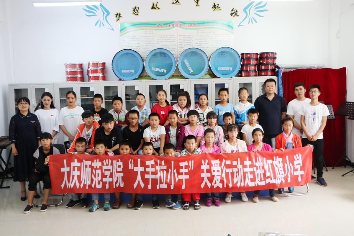 按照黑龙江省委高校工委,省教育厅《关于开展高校大学生与留守儿童“大手拉小手”关爱行动实施方案》的部署安排,7月9日,音乐与舞蹈学院团总支书记沈天磊老师带领学生赴大庆市林甸县红旗镇中心小学进行“大手拉小手”关爱行动,并带来了同学们筹款购买的文具用品。