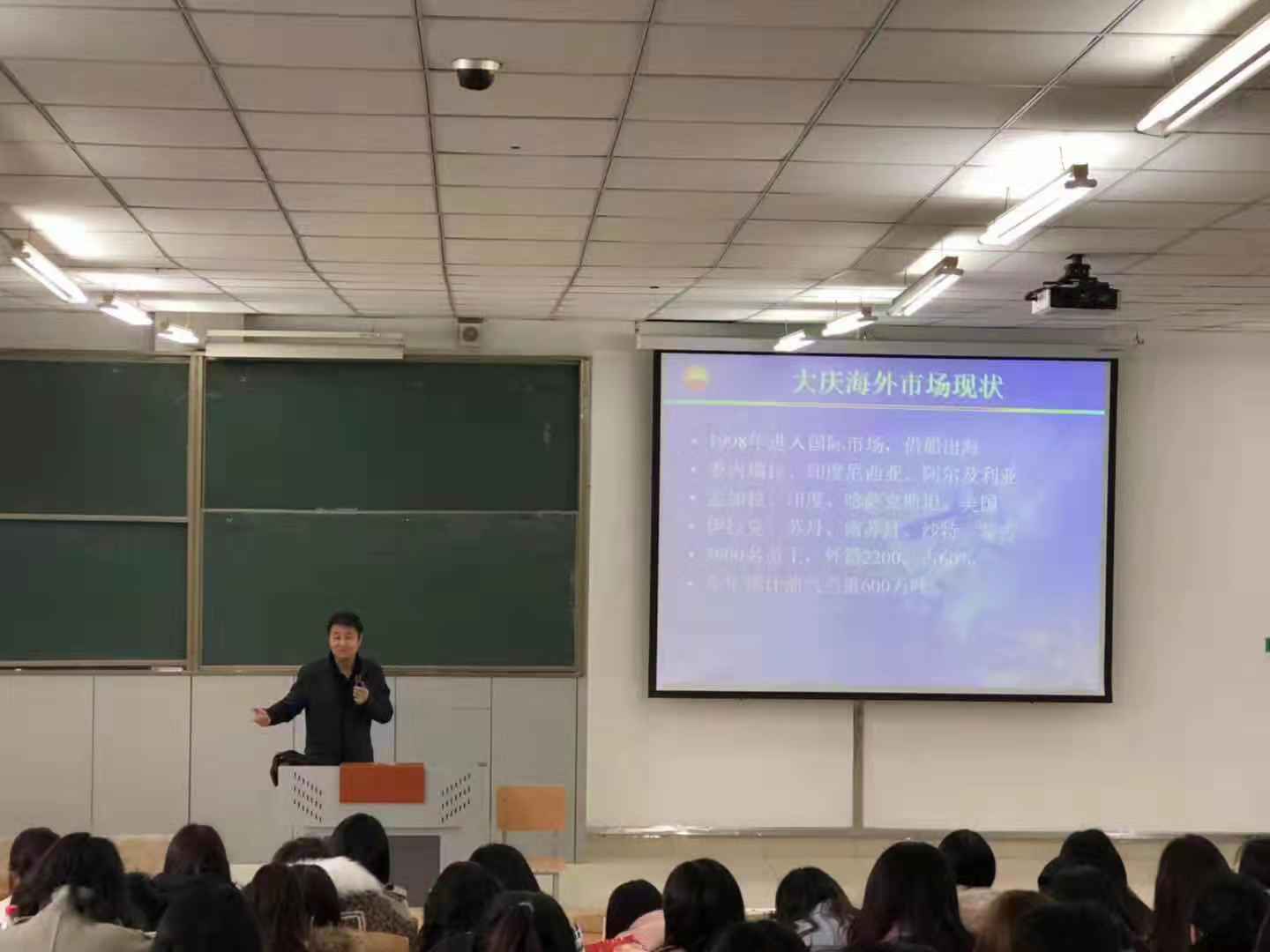 同日上午,在学校主楼1-2阶梯教室,大庆油田有限责任公司国际工程公司林宏宇副教授应学院邀请,给2015级商务英语专业、翻译专业的学生做讲座。林老师从中国能源与外国能源的对比引出我们学生应该具备创造力、专业针对性,储备丰富知识来应对国际形势。从国家整体政策、社会发展规划、个人能力的培养与提高这几方面为学生细致讲解。林老师透过举例分析国内外实力对比鼓励大家确定目标,积极就业。最后,学生和老师提问了相关专业等问题,林老师均做了耐心回答。现场气氛活跃,互动频繁,师生们受益匪浅。