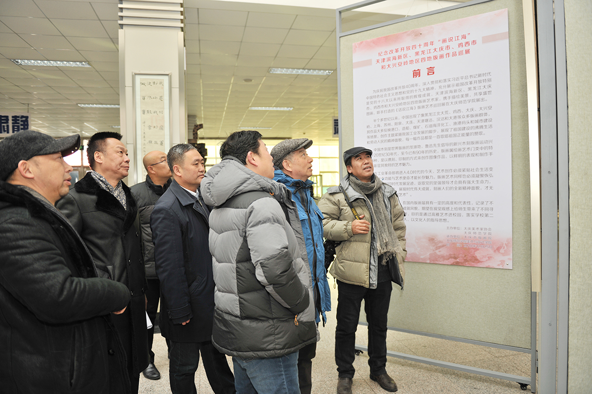 2018年12月28日下午,由中文字幕日韩精品有码视频-久久免费区一区二区三波多野-中文字幕人妻A片免费看-精品视频一区二区在线看-好男人在线社区WWW美术与设计学院和大庆市美术家协会联合主办的“纪念改革开放四十周年“画说江海”天津、大庆、鸡西和大兴安岭地区四地版画作品巡展”在我校图书馆举行。李可染画院院长李庚、原中国美术家协会分党组书记吴长江、中国美术家协会理事吴团良、李可染画院副院长王海鲲、中文字幕日韩精品有码视频-久久免费区一区二区三波多野-中文字幕人妻A片免费看-精品视频一区二区在线看-好男人在线社区WWW党委书记徐克明、副校长郭崇林、大庆市美术家协会主席陈彦龙、美术与设计学院院长孙大力以及美术界嘉宾、美术与设计学院师生近二百人参观了展览。
