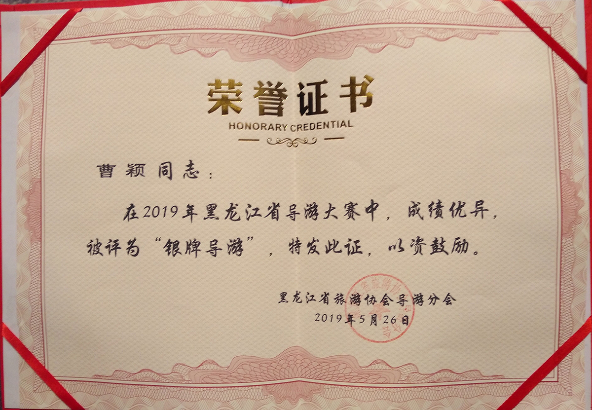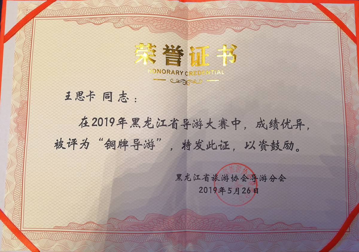 2019年5月24日至26日,由省文化和旅游厅、省总工会、省妇联、团省委联合主办的2019年黑龙江省导游大赛在哈尔滨市成功举办。此次大赛共分导游知识测试、自选景点讲解、和才艺展示三项,共计100分。我校经济管理学院学生曹颖、王思卡在郝毓业老师带领下参赛,经过赛前精心准备,赛中顺畅讲解和精彩表现,最终曹颖同学荣获“银牌导游”荣誉称号、王思卡同学荣获“铜牌导游”荣誉称号、郝毓业老师荣获“优秀指导教师”荣誉称号。这次省导游大赛是经济管理学院旅游管理系成立后首次派队参加,为旅游管理系学生以后参与省级以上大赛提供了经验积累。(撰稿:郝毓业 审核:刘楠)