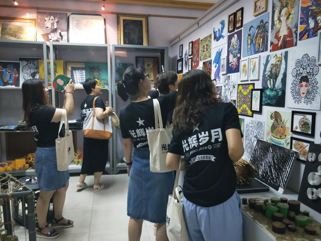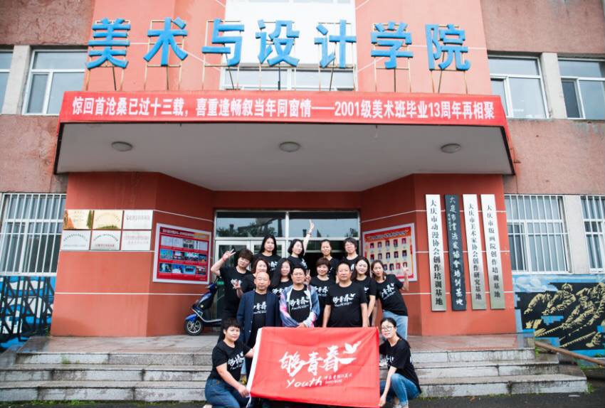 这次聚会,有多名学生是十三年后从哈市、大连、北京、青岛等城市第一次重返校园,两批学生统一制作班旗,统一服装,服装上分别印制着“辉煌岁月”和“勇向前、心依旧”的感言。学生还邀请专业人士跟踪录像摄像等。学院负责人和多名教师与学生在会议室亲切座谈交流,然后带领学生参观画室、备品室、学生习作陈列室、校企共建实训室、图书馆前厅的优秀作品陈列和大庆油陶陈列室等。