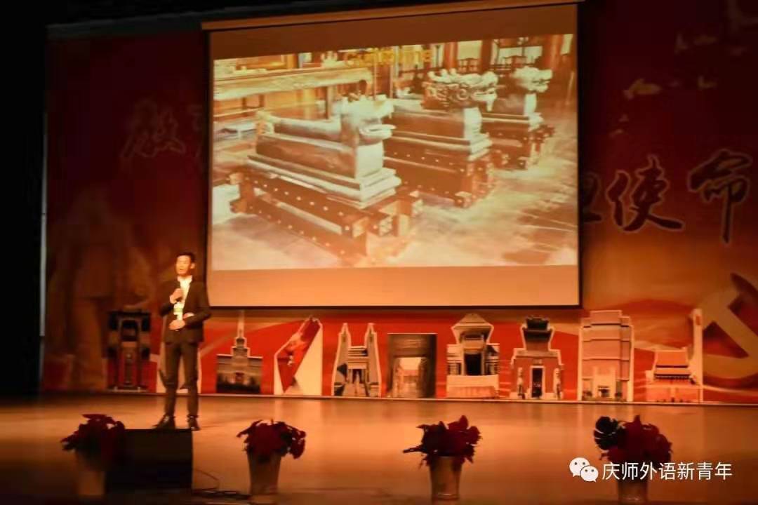 经过前期的层层选拔,来自8个学院的共10名选手进入了决赛现场。比赛共分为两轮,包括景点介绍和知识竞答两个部分。第一个环节为景点展示。各组选手通过中文或英文的方式对各自的景点进行了讲解,并结合各自旅游景点的历史、地理、文化等进行了整体介绍。祖国的壮美河山在参赛同学们精美幻灯片的切换中吸引着在座每一位师生的眼球,也滋养着他们的心灵。参赛选手对铁人纪念馆,油田陈列馆,贵州遵义,井冈山,中国革命人民军事博物馆,沈阳“九·一八”历史博物馆,天津周邓纪念馆,开封府,红岩革命纪念馆,天安门等旅游景点一一进行了介绍。第二个环节为知识竞答。每位选手依次选择任意两道题目进行回答,考察他们对导游相关知识的了解和掌握程度。在两个小时内,参赛选手为在场师生共同提供了一场视觉的盛宴。参赛的选手们准备充分、表达流利,富有表现力。不同的风土人情,各异的人文风韵,引得在场观众阵阵喝彩。最后,嘉宾与评委老师为获奖选手颁奖并合影留念。