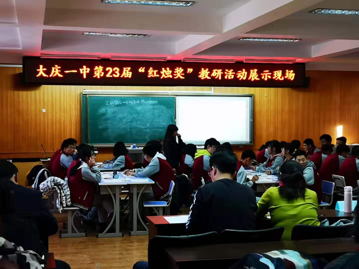2019年11月20日,外国语学院英语专业2017级学生到大庆市第一中学观摩第二十三届“红烛奖”,圆满完成教育见习任务。