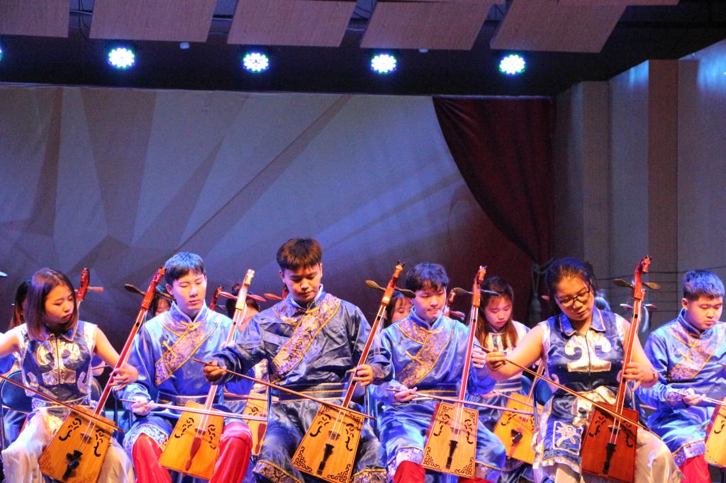 音乐会在马头琴乐团演奏的《蒙古骏马》中拉开了序幕。何晓影同学自弹自唱的《洛丽塔》采用了钢琴曲《献给爱丽丝》的旋律,全曲旋律优美,婉转悠扬;王金、张玉琴、陈霞、马克难四名同学创作的《E大调和声曲》,将课堂学习内容与实践创作充分结合,形式新颖、创作难度大;《夕阳萧鼓》是中国十大古曲之一,此曲抒情写意、旋律优美。吴夏本、王柯锌、张媛三名同学在表演中将钢琴与舞蹈、古典与现代融为一体,博得了现场观众阵阵掌声;民族管弦乐团演奏的《绿腰》为唐代著名歌舞大曲,该作品由器乐专业学生集体改编而成;陈庆锌、张媛两名同学表演《赤伶》,表达了旧社会艺人坎坷与辛酸的艺术人生;