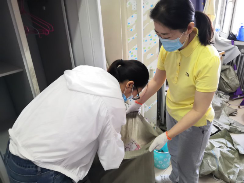 窄小的寝室里沟通之声此起彼伏,老师们也非常耐心,谨慎仔细地整理这些承载了毕业生四年回忆的物品。参与行李打包的老师们累并快乐着,老师们说:“我们把爱随行李一起整理打包,寄于千里之外,愿这场特殊的毕业送别能让孩子们安心奔赴前程。”“对孩子们来说今年的毕业季确实是一种遗憾,老师们亲手打包的行李,如果能让他们能感受到来自母校的关爱,那我们也很满足了。以这种特殊的形式送别毕业生,很有意义。”经过几天的忙碌,毕业生行李物品的打包工作正在接近尾声,老师们用真真切切的情谊和实实在在的行动,为2020届毕业生送上了一份特别的毕业礼物。